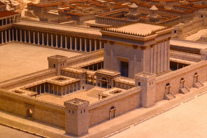 El templo no era un local amplio para el ingreso masivo del pueblo, como sucede entre nosotros. Era un inmenso recinto amurallado de unos 480 metros de longitud por 300 de anchura. Varias puertas permitían la entrada a amplios pórticos o atrios. (En estas galerías Jesús niño fue encontrado por sus padres y años más tarde predicó y discutió con los judíos.).