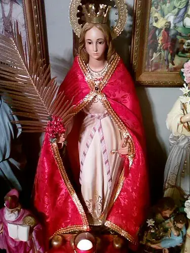 Saint Barbara Bendita is invoked by her followers in the face of sudden death, because her death was instantaneous, like that of her evil father. For this reason, the saint is attributed with the saving gift of death in many specific cases. Blessed Barbara was chosen from a very select list of auxiliary saints.