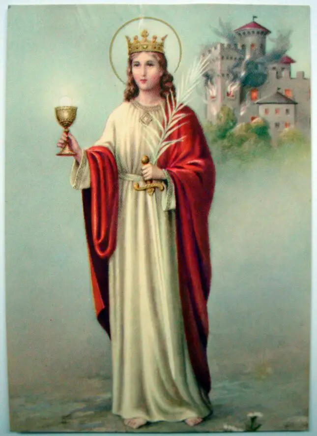 O Almighty God, who delivered the great Saint Blessed Barbara from all the sufferings she endured at the hands of her malevolent Father, from whose virginal humanity the blessed blood flowed for the sake of her martyrdom at the Judgement.