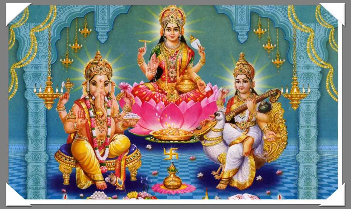 Lakshmi es la esposa de Vishnu y dentro de la religión es considerada la diosa de la fortuna y la belleza. Dentro de los hogares de la India, esta es una de las deidades más veneradas incluso en los negocios del país. Su representación es como una hermosa mujer de cuatro brazos que se eleva en una flor de loto, y reside donde haya laboriosidad, coraje y virtud.