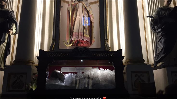 Hoy, Santa Inocencia descansa, como una muñeca con un vestido blanco, en una vitrina. Algunos devotos católicos la visitan para orar y pedir milagros.