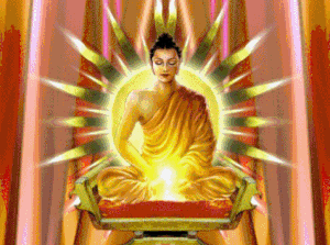 Iluminación. Buda fue la primera persona en alcanzar la iluminación (es la meta ultima en el budismo) total. En ella se encuentran todas las cualidades positivas del ser: el gozo, la usencia del miedo, y la compasión. La conciencia lo abarca todo.